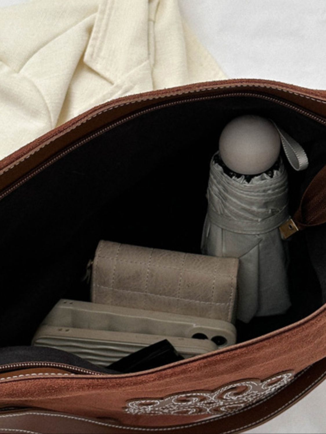 Suede Patch Tote Bag: Stylish and Adjustable Design