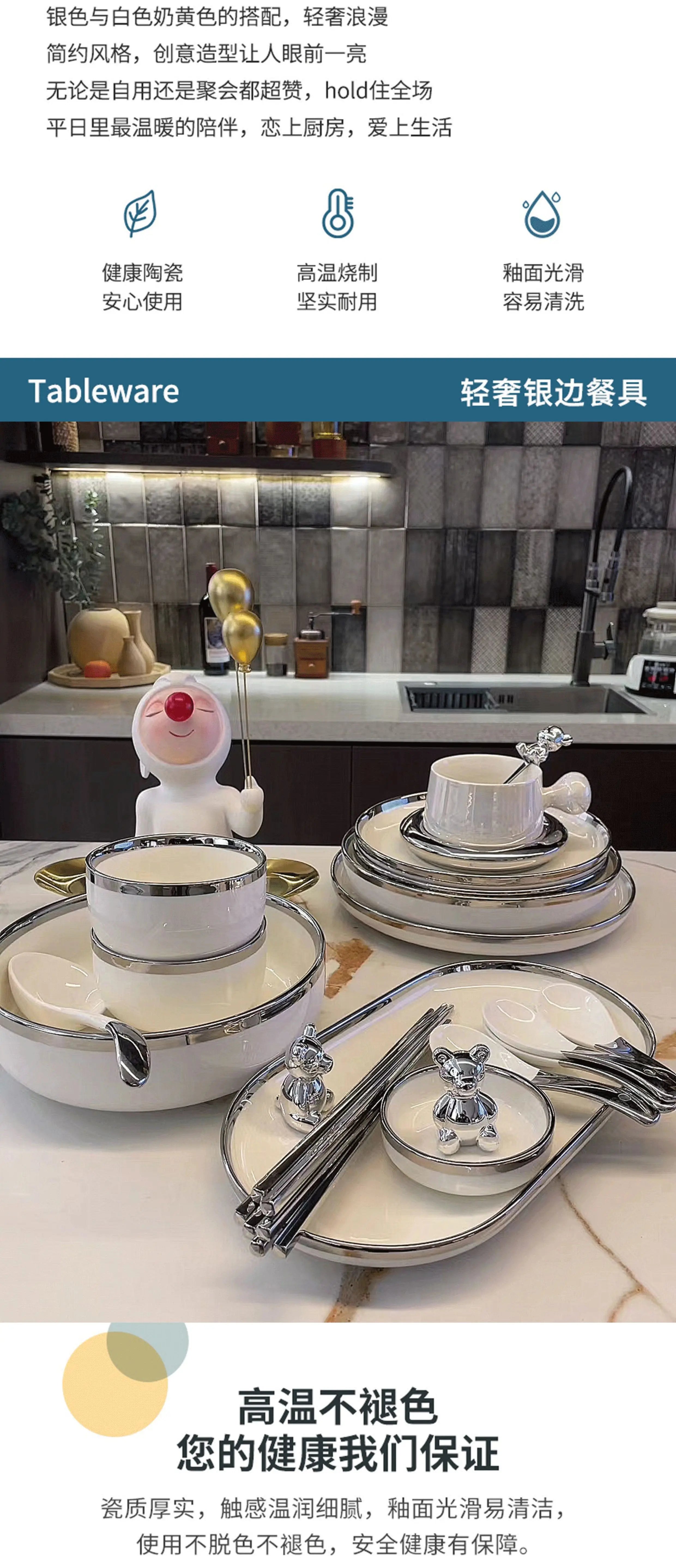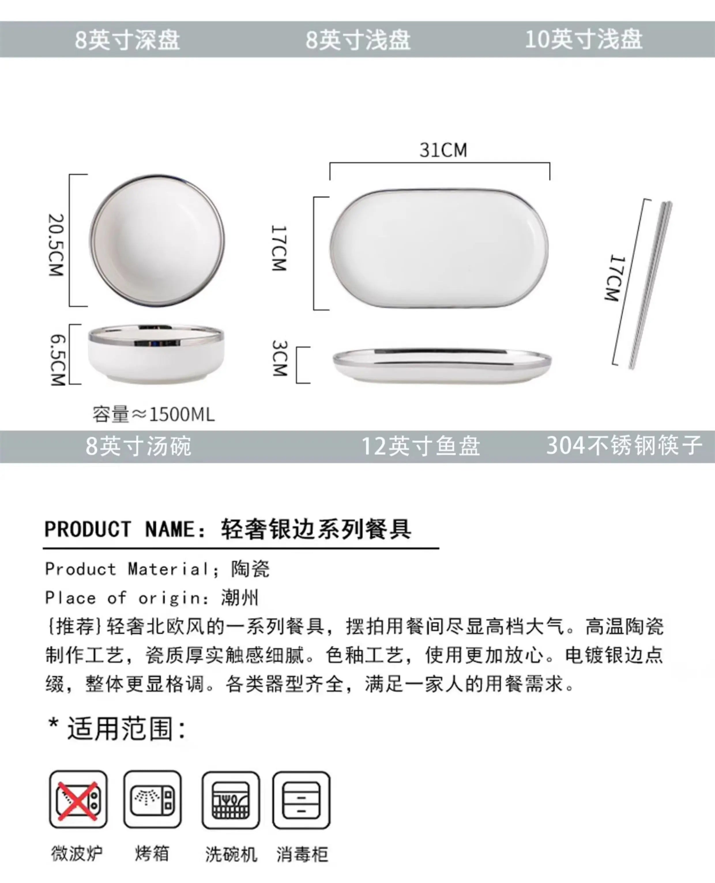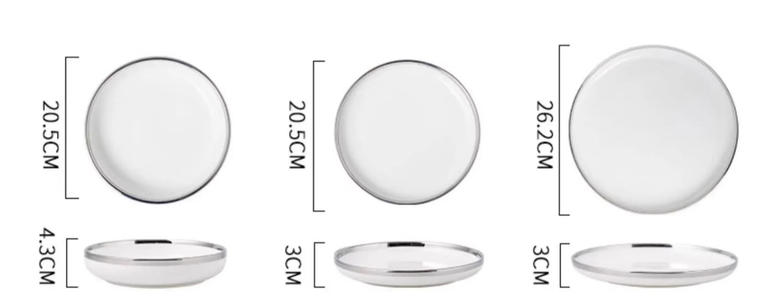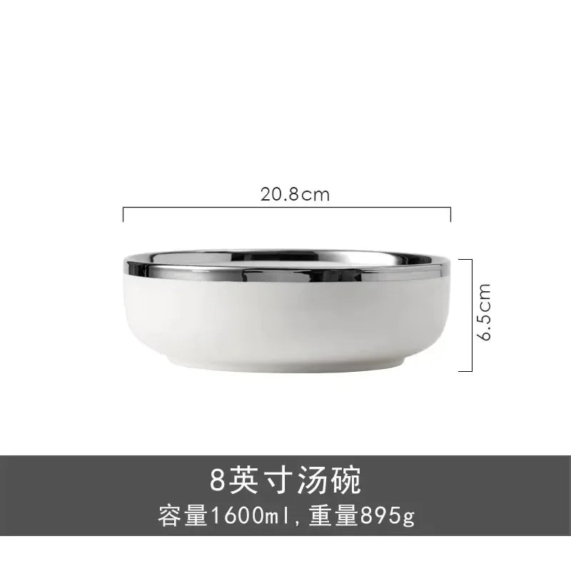 Elevate your dining experience with our Marble Patterned Light Luxury Silver Edged Household Dishes. These exquisite ceramic pieces are designed to add a touch of sophistication to your table setting, making every meal feel like a special occasion.