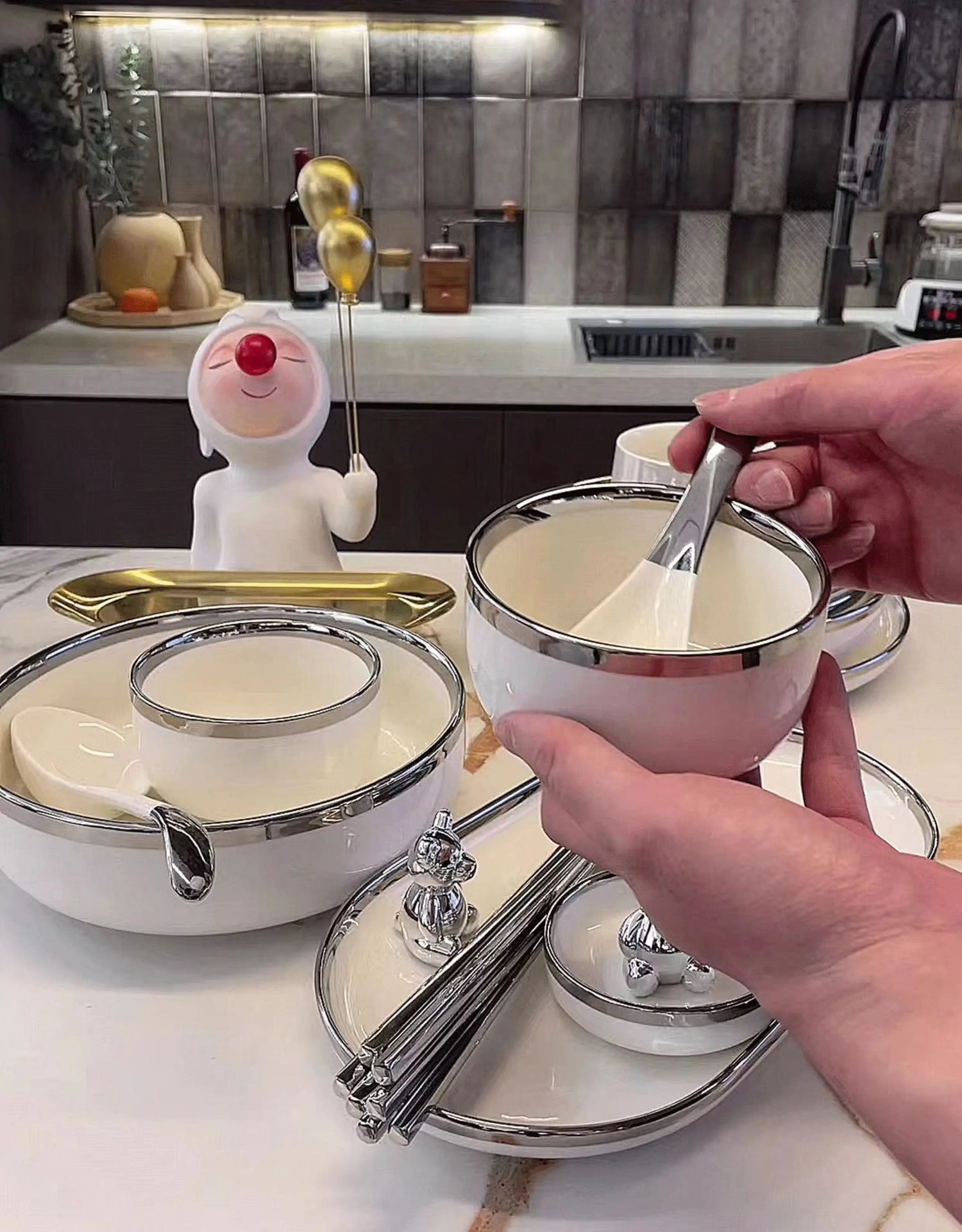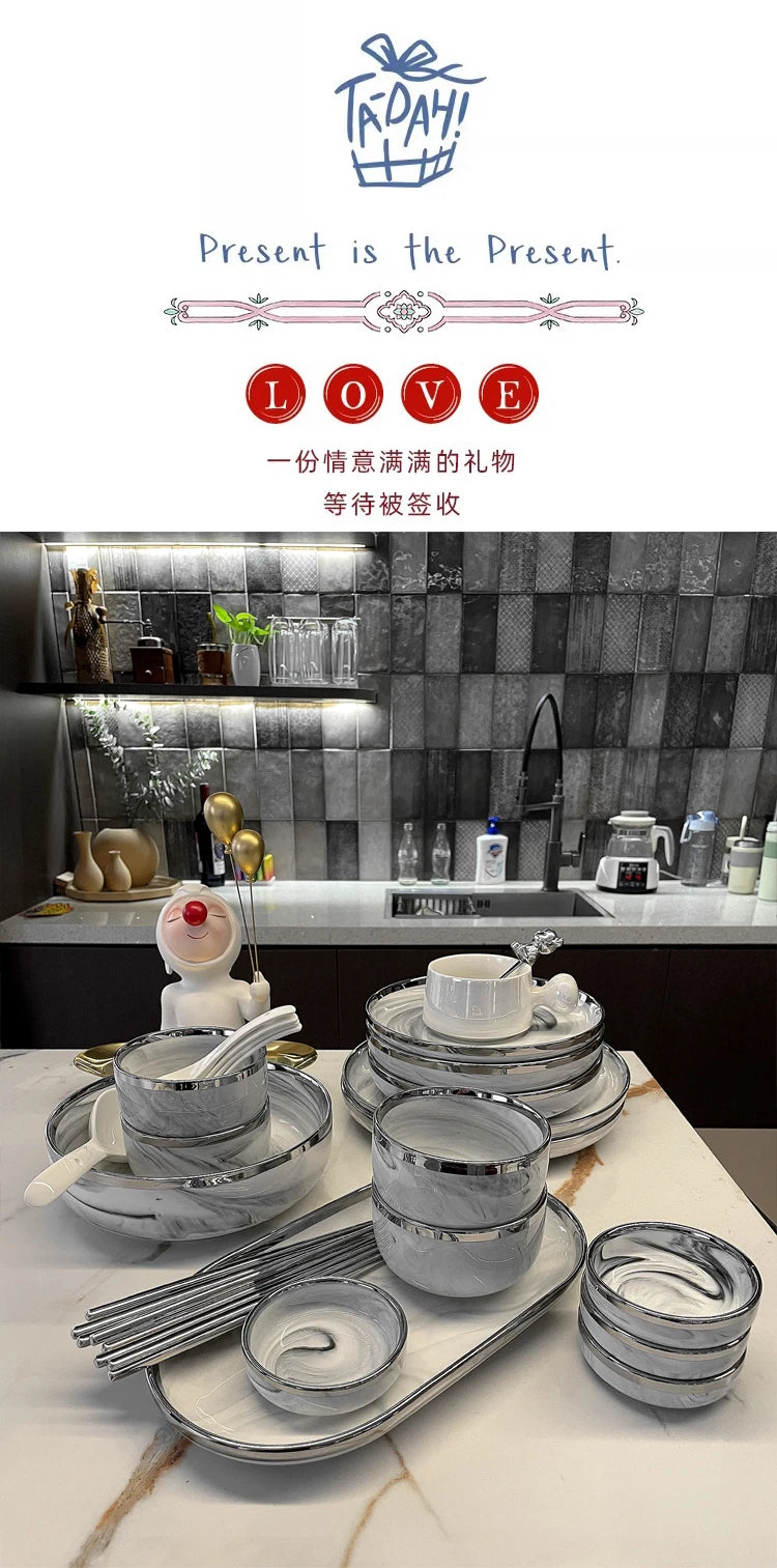 Marble Patterned Light Luxury Silver Edged Tableware Set