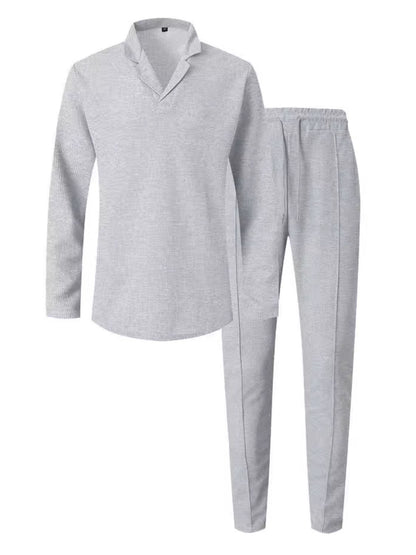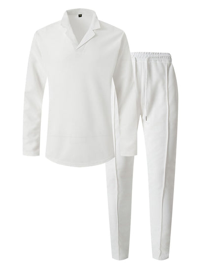 Don’t miss out on the perfect blend of style and comfort. Order your Men's Full Size Waffle-Knit Long Sleeve Top and Pants Set Plus Size today and redefine your casual wardrobe!